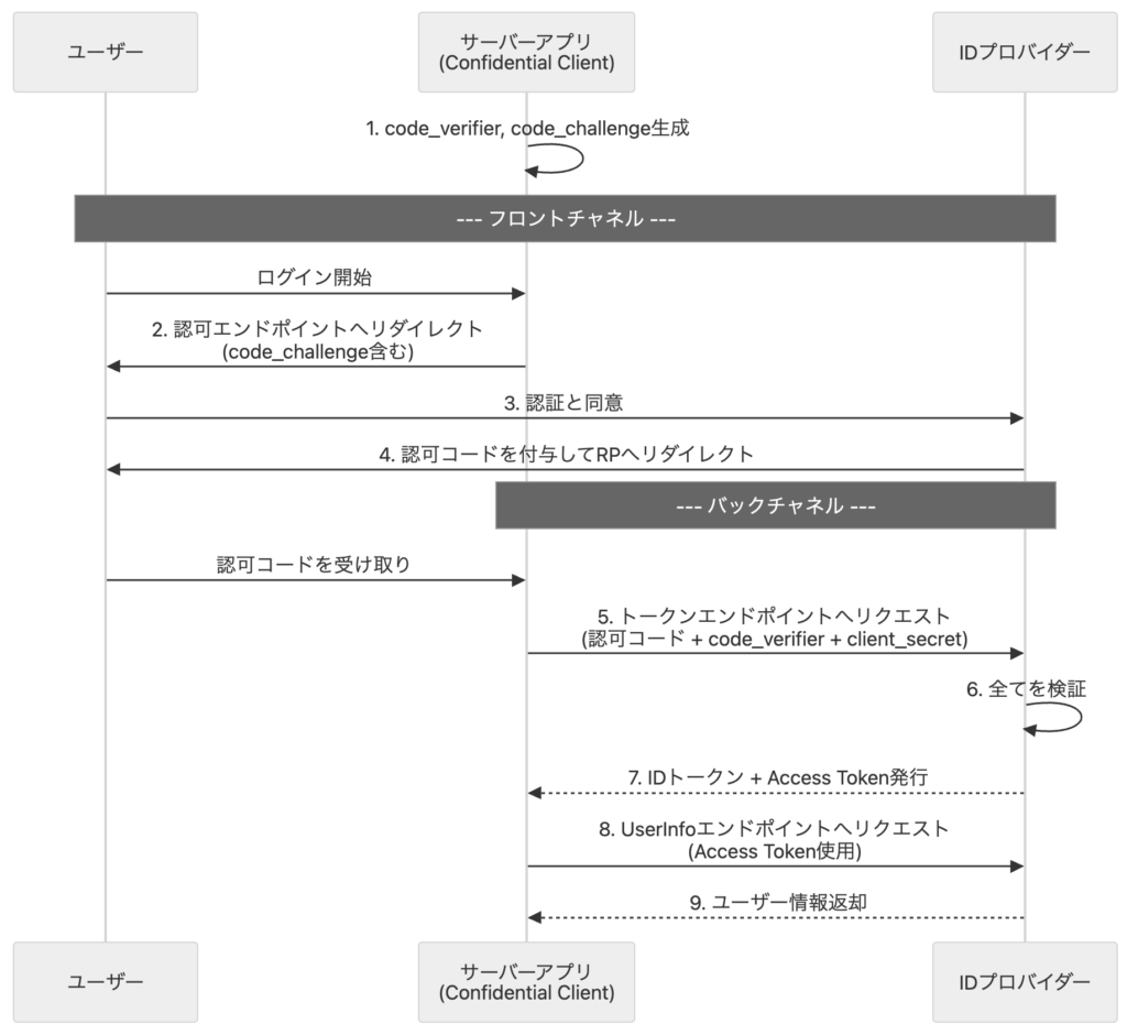 によるクライアント認証と、PKCE によるセッションの紐付けを両方行い、非常に堅牢なセキュリティを実現します。