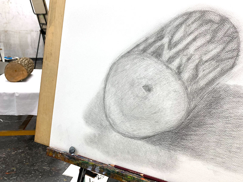 美大の「造形基礎II」の授業として2日間「丸太を描く」という課題をやってきました。